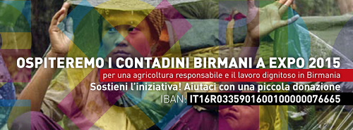Raccolta fondi online per l’organizzazione del seminario: 29 MAGGIO Ore 14,30 – Milano | EXPO 2015 – SAVE THE DATE – AUDITORIUM PADIGLIONE SOCIETÀ CIVILE – CASCINA TRIULZA – Empowerment dei piccoli contadini birmani. Sviluppo rurale e agroindustriale sostenibile, quali strumenti di pace e democrazia.