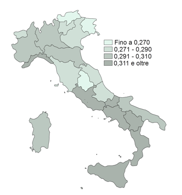 Nel 2012 circa sei famiglie su dieci (il 62%) hanno conseguito un reddito netto inferiore a 29.426 euro, che corrisponde a circa 2.452 euro al mese. In Sicilia si registra il reddito medio annuo più basso (circa il 29% in meno del valore medio italiano) mentre in Campania si osserva la più elevata concentrazione del reddito; all’opposto l’equità si mantiene alta nella provincia autonoma di Bolzano.