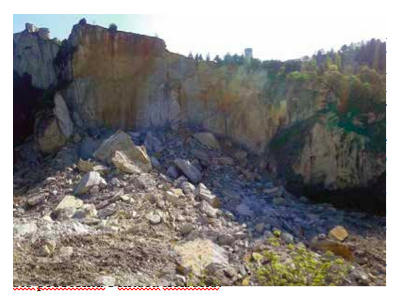 Figura 6 a – Rupe di San Leo (Provincia di Rimini): foto panoramica del crollo avvenuto il 27 luglio 2014.