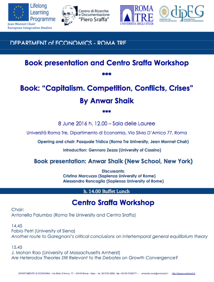 8 June 2016 h. 12.00 – Sala delle Lauree – Università Roma Tre, Dipartimento di Economia, Via Silvio D’Amico 77, Roma.