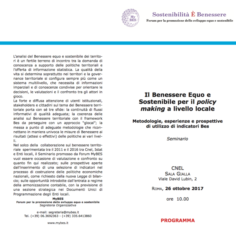 Il Benessere Equo e Sostenibile per il policy making a livello locale – Metodologie, esperienze e prospettive di utilizzo di indicatori Bes – Forum MyBES