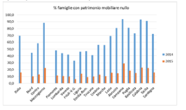17 Il grafico seguente illustra la distribuzione regionale del patrimonio mobiliare nullo confrontato 2014 2015
