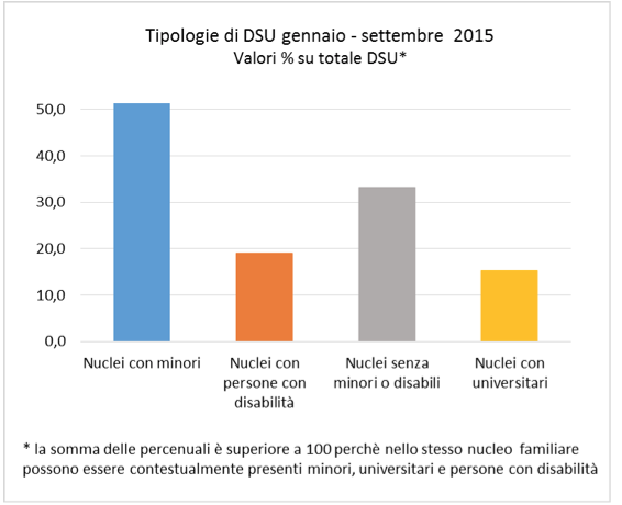 Una parte del report si sofferma sulle diverse popolazioni ISEE, tenendo presente che: sono diverse le prestazione soggette alla prova dei mezzi tramite questo indicatore (asili nido, mense scolastiche, università, contributi economici per il contrasto alla povertà, prestazioni socio-sanitarie, agli sconti tariffari, ecc.); le scadenze temporali sono distribuite diversamente durante l’anno, sono articolati i soggetti erogatori e non sistematico l’accesso alla banca dati delle prestazioni sociali dell’INPS. Le popolazioni indagate sono nuclei familiari con minorenni, nuclei con persone con disabilità, nuclei con minori e disabili, nuclei con universitari[xvii].