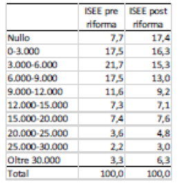 [xv] Nell’ISEE pre riforma la componente del patrimonio era solo il 13,5% rispetto all’86,5% del reddito. Nell post riforma il patrimonio sale al 19,5%
