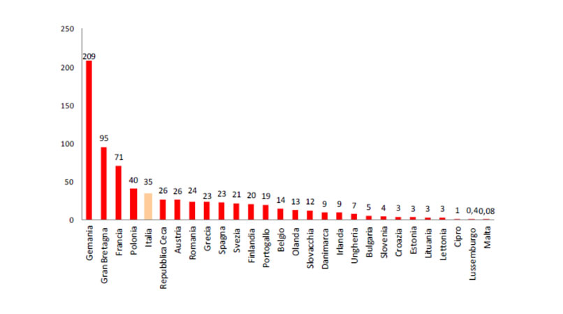 Numero dottorandi nei Paesi europei 2012 (in migliaia)