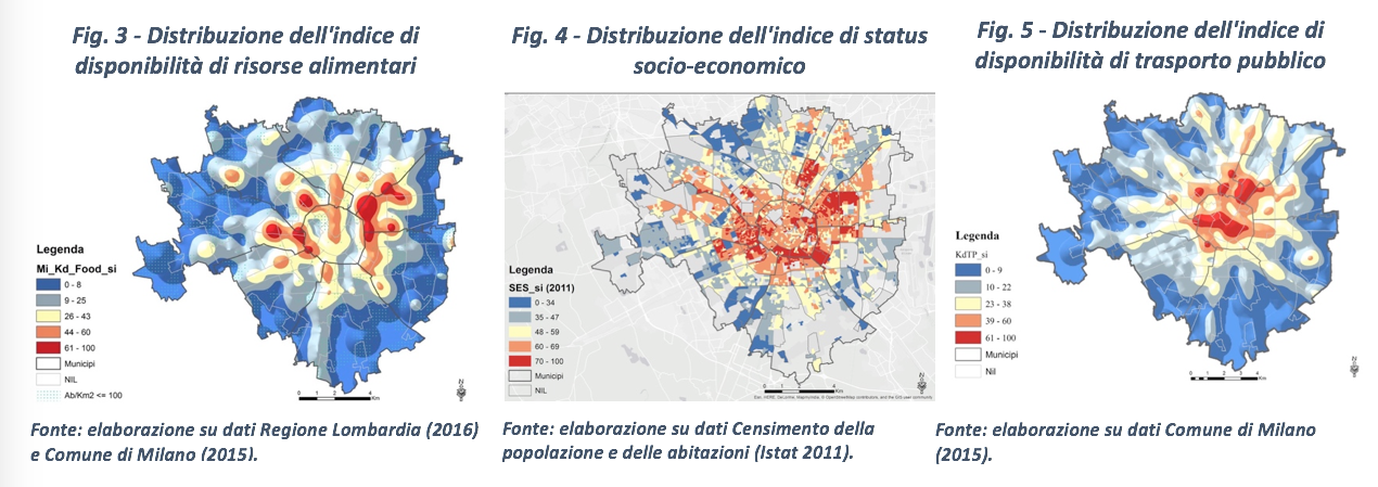 – Food Desert, in cui l’accesso a un’alimentazione sana è messo in dubbio dalla scarsità di punti vendita alimentari e dalla bassa disponibilità di mobilità (si avvicinano a questo modello Ronchetto sul Naviglio, Gratosoglio-Ticinello, Forze armate, Mecenate, Stadera, Lorenteggio, viale Monza);