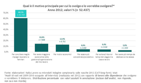 Le indagini sulle opinioni dei lavoratori indicano, come motivazione prevalente, la conciliazione lavoro/ famiglia 12.