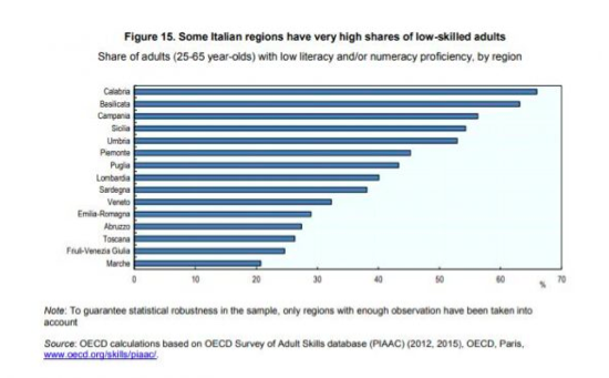 Qualità del fattore lavoro, composizione settoriale e dimensione delle imprese. Tre fattori chiave, evidenziati anche da Prometeia, che aggiunge – a livello più generale – la bassa qualità dei servizi pubblici (giustizia, istruzione, sanità, PA), criminalità organizzata e corruzione, i problemi infrastrutturali e il basso capitale umano. Proprio il capitale umano rappresenta un elemento essenziale, molto spesso sottovalutato, nonostante sia evidente la sua incidenza sulla qualità dei servizi pubblici e sul capitale sociale. Definito dall’Ocse come l’insieme delle “conoscenze, abilità, competenze e altri attributi degli individui che facilitano la creazione di benessere personale, sociale ed economico”, rappresenta un problema maggiore per le regioni meridionali, sia per la situazione attuale…