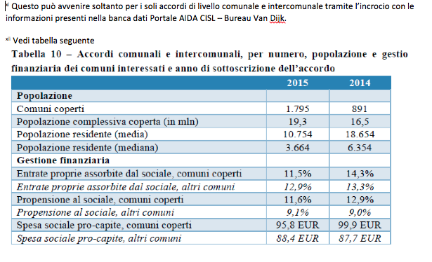 - ¬nel 2014 la contrattazione sociale si è sviluppata, rispetto al 2015, in Comuni di dimensioni maggiori: il dato medio della popolazione residente è, in effetti, pari a 18.654 persone e quello mediano è pari a 6.354 persone;