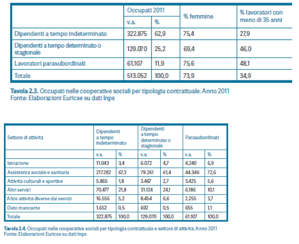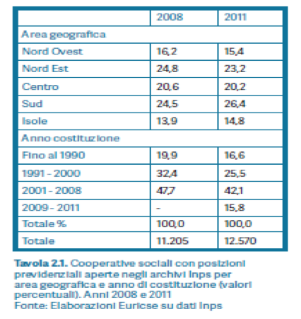 Nel corso degli anni il numero delle cooperative sociali è andato aumentando. Ciò è avvenuto anche analizzando il periodo della crisi economica e confrontando gli anni 2008 2011. Il contributo alla crescita in questo caso è dovuto alle regioni meridionali e dalle isole . XII