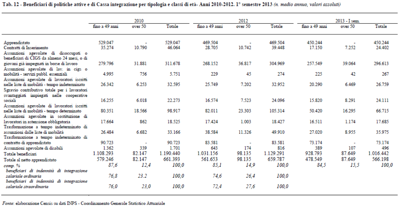 In particolare sono le assunzioni agevolate di disoccupati o beneficiari di cassa integrazione straordinaria da almeno 24 mesi a raggiungere il numero medio più elevato di beneficiari: circa 40mila individui nel primo semestre del 2013.