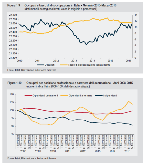 L’occupazione che aveva ripreso a crescere già dal 2014, continua il suo dato positivo nel 2015 (+ 186 mila unità in più, pari allo 0,8%).