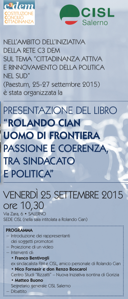 Venerdì 25 settembre 2015 ore 10.50, sede CISL, via Zara,6 Salerno.