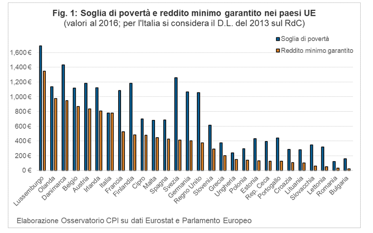 Il confronto con l’Europa rispetto al livello del reddito minimo garantito .