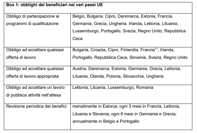 Il confronto con l’Europa rispetto agli obblighi per il percettore