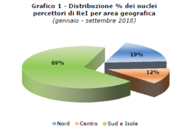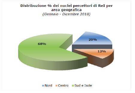 1. E’ aumentato nel corso del 2018 il numero dei beneficiari (462 mila nuclei familiari; 1,3 milioni di persone). La maggior parte dei benefici sono stati erogati nelle regioni del Sud. La distribuzione percentuale per aree geografiche non ha subito modifiche.