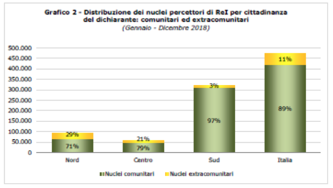 Il numero dei nuclei percettori per cittadinanza, distinti tra comunitari ed extra comunitari, non è modificato con l’allargamento della platea dei beneficiari su base annua.
