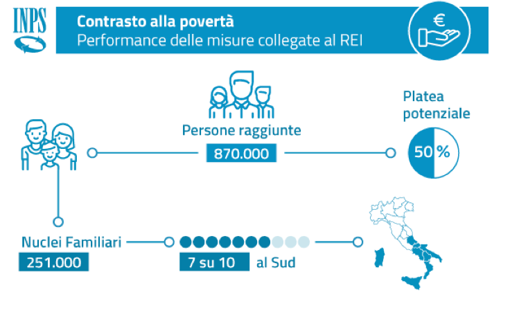Infine, a tre mesi dal lancio del Reddito di Inclusione (REI), l’Osservatorio statistico INPS ha prodotto i primi dati sulle domande di richiesta del beneficio: nel primo trimestre 2018 sono stati erogati benefici economici a 110mila famiglie per un totale di 317mila persone. Per ciò che riguarda la diffusione sul territorio nazionale il 72% delle prestazioni è stata erogata nel sud d’Italia, raggiungendo il 76% delle persone coinvolte. Campania, Calabria e Sicilia sono le regioni con il maggiore numero assoluto di famiglie beneficiarie: insieme rappresentano il 60% del totale dei nuclei e il 64% delle totale delle persone coinvolte.