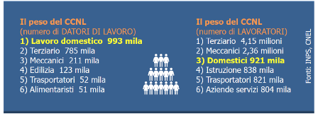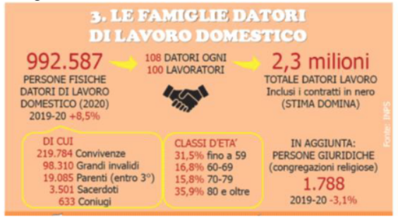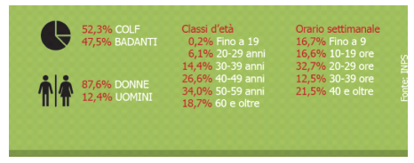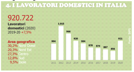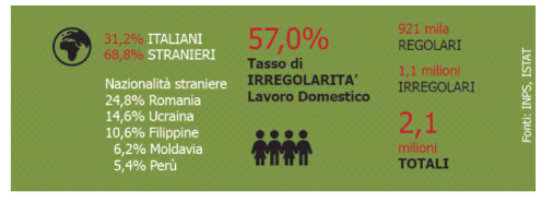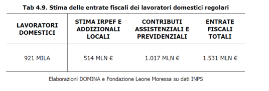 Nel Rapporto viene effettuata una stima di un milione e cento persone impegnate nel lavoro domestico irregolare. Traendo la conclusione di oltre due milioni di addetti nel settore[vii].